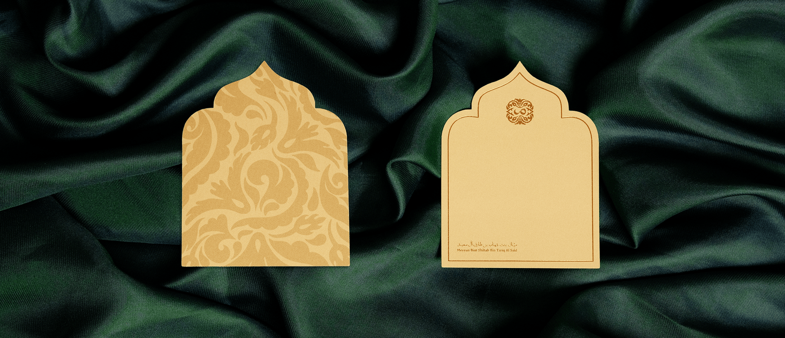 Given that Her Highness will use this branding for formal gifting and official documents, the stationery system needed a serious undertone. Elements like notebooks, enclosure stickers, business cards, and gift tags feature the emblem prominently, paired with the Diwani script. However, subtle touches, such as the pastel accents, keep the overall look from feeling too rigid. This blend of sophisticated minimalism and delicate artistic notes ensures the brand can adapt to various formal and creative contexts.