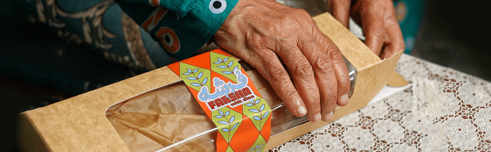 The patterns became a hallmark of Farsha’s visual identity. You see them everywhere, from product packaging to social media visuals. Some designs were directly inspired by recipes passed down to Chef Dina from the women in her family, showcasing the connection to legacy and tradition. Checkered patterns and fabric backdrops used in brand imagery evoke memories of eating in a grandmother’s kitchen—a place where love, food, and family come together effortlessly.